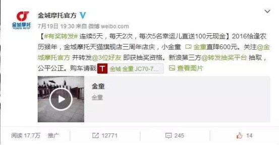 7月11日22:00开奖,抽金城LAKO 110一台。