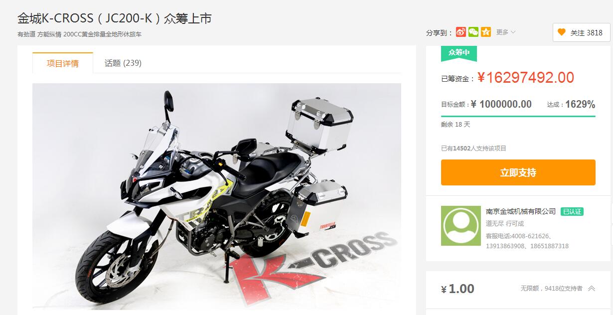 摩托车变休闲娱乐金城众筹研发高端时尚产品