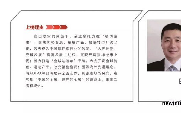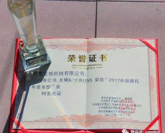 被誉为中国顶级摩托大奖(TOP CHINA MOTOR)的中国摩托车年度车型评选活动日前落幕。 12月6日,在西安隆重举行的2015中国摩托车行业年度车型评选颁奖盛典上,金城SJ150-D猎枭成功获选2015中国摩托车年度十佳