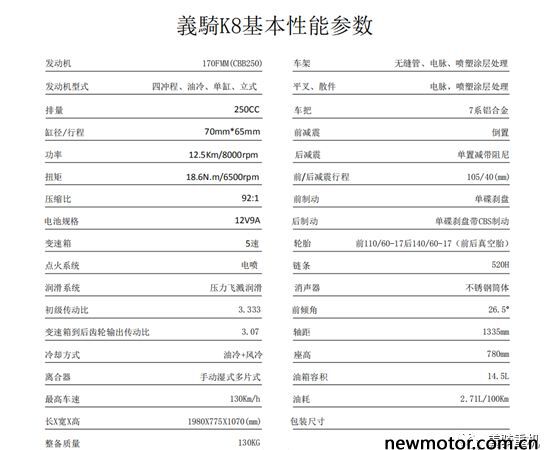 义骑重机义骑K8经过西藏各种路况和高原气候的挑战之后与2020年8月31日正式上市投放市场整备质量130KG,5色可选,10000公里的平均路试油耗2.71/100km出众颜值,一眼爱上
