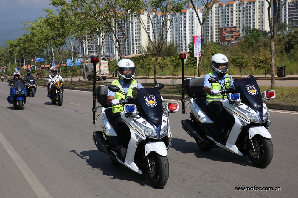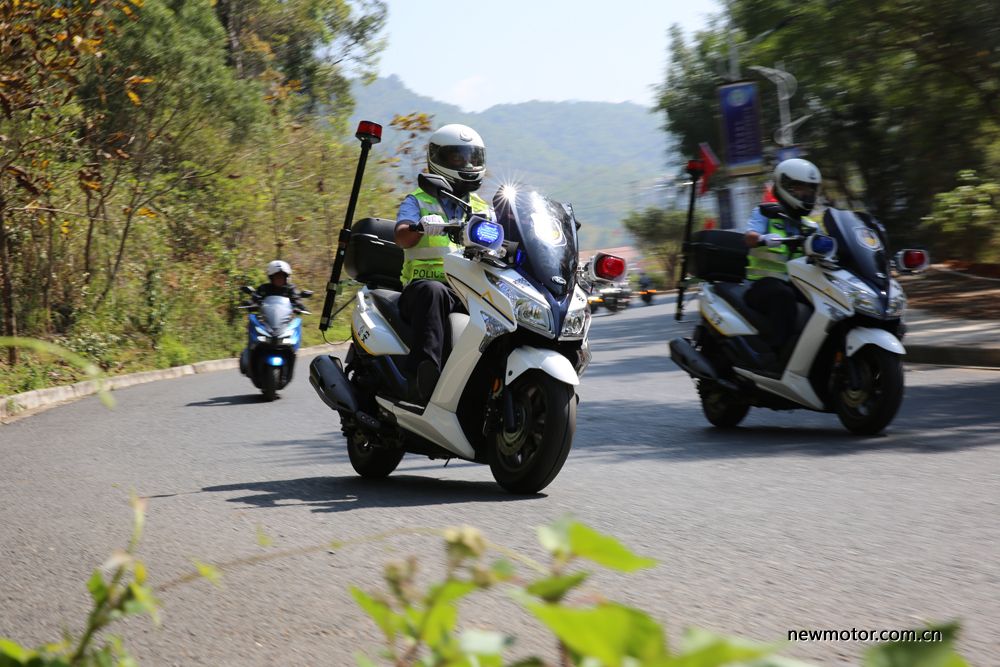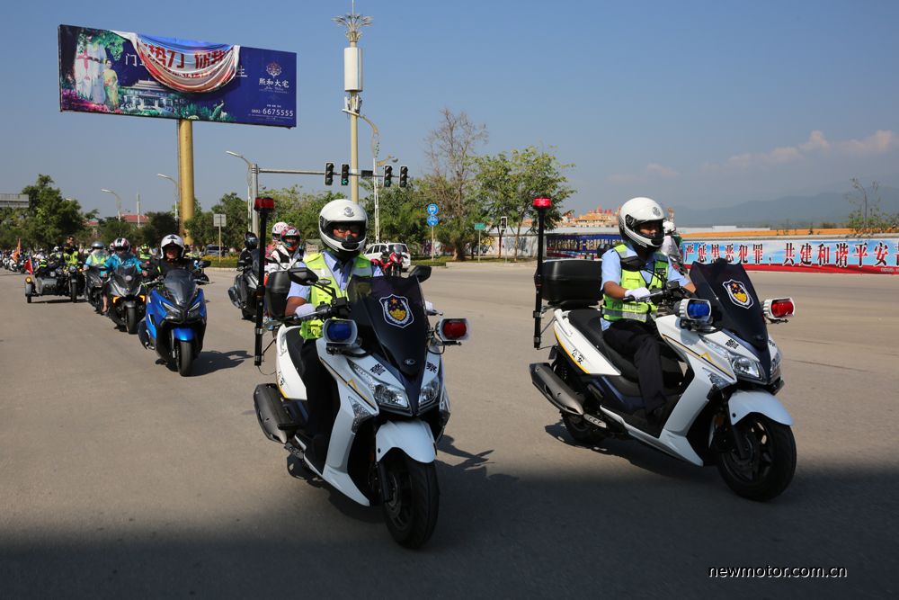 在光阳之夜音乐晚会上,光阳捐赠给德宏交警大队的两台艇250警用版被用于头车开道,随后是光阳的AK550及赛艇系列。