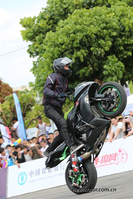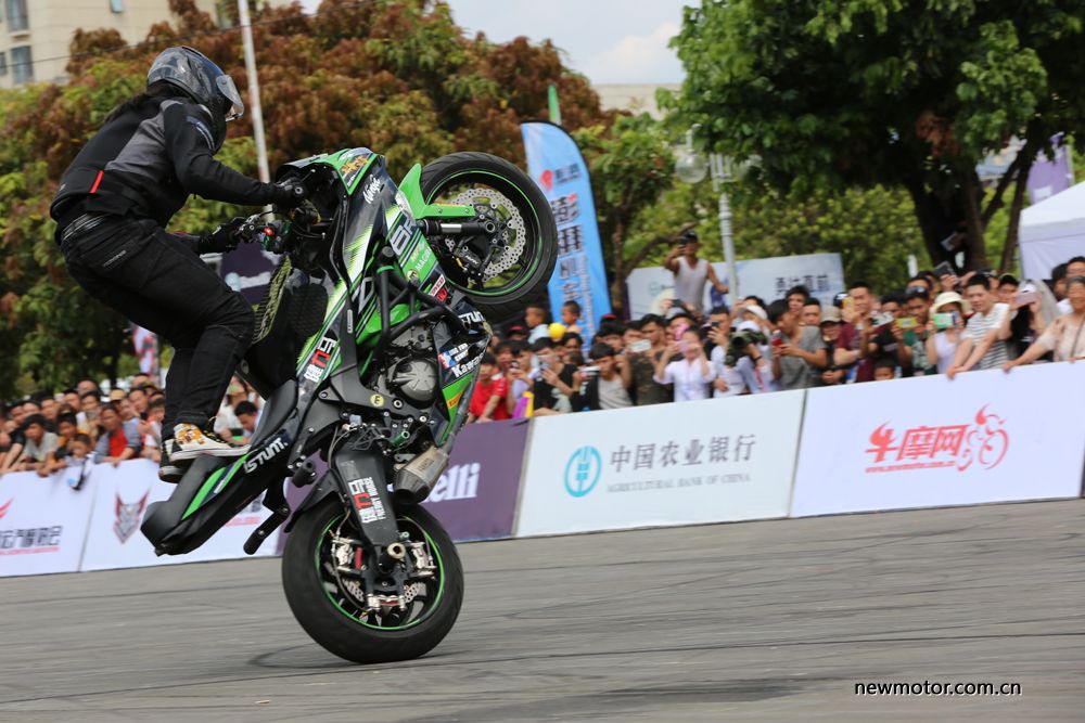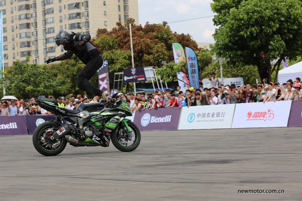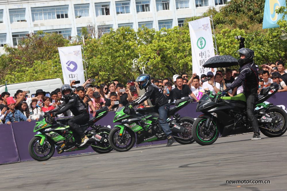 下午是特技表演,主委会特意邀请了去年重庆摩博会特技大赛的冠军刘辉等知名车手,为大家带来一场只有在电影中才能看到的精彩的特技表演。