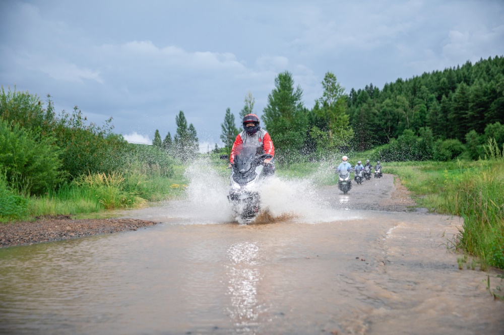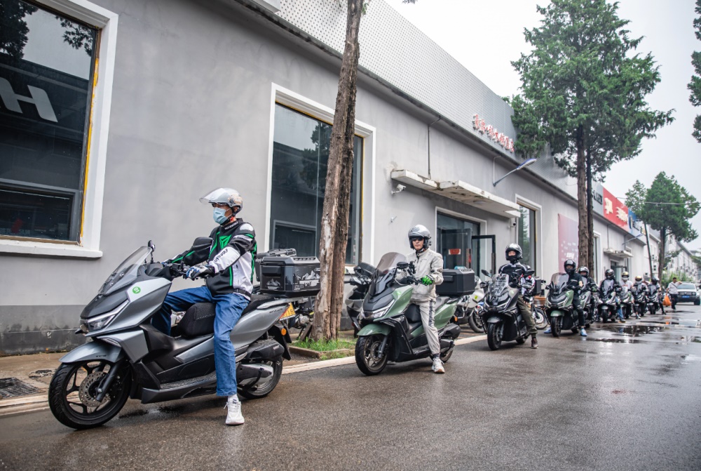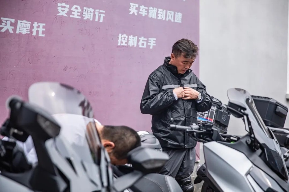 车辆检查完毕,用户们也自测了车辆的TFT 智能仪表以确保蓝牙连接正常,方便途中的沟通,将骑行服、护具、头盔、雨衣等骑行装备穿戴整齐,准备出发。