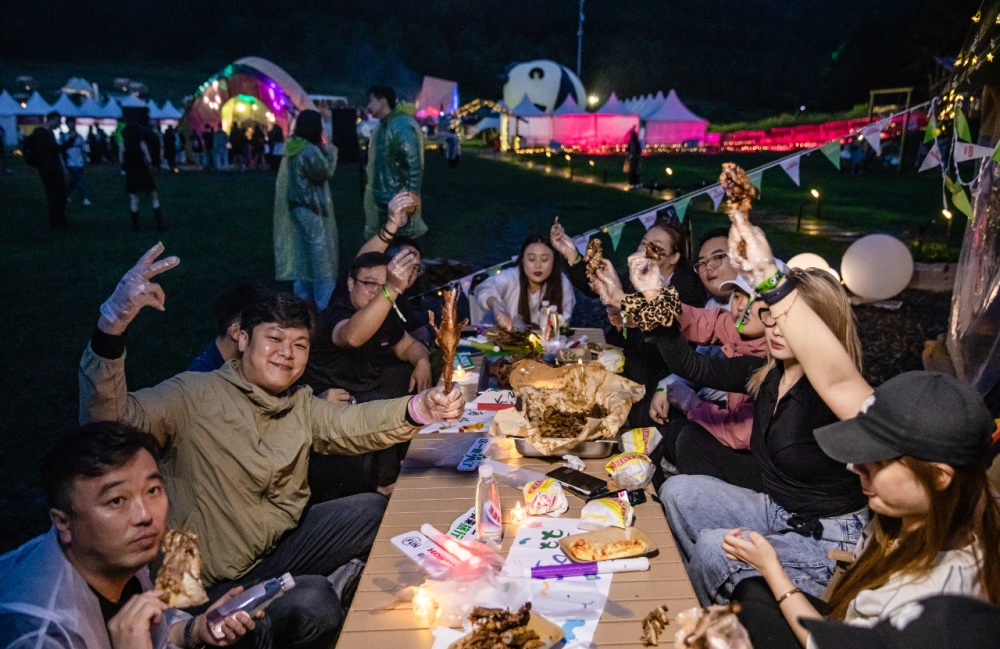 稍作休整,晚上到了音乐节现场,坐在新大洲本田搭建了专用休息区,听着动感的音乐、品尝着烤全羊、交流着骑行感受、也感叹这这一天的坎坷与兴奋。