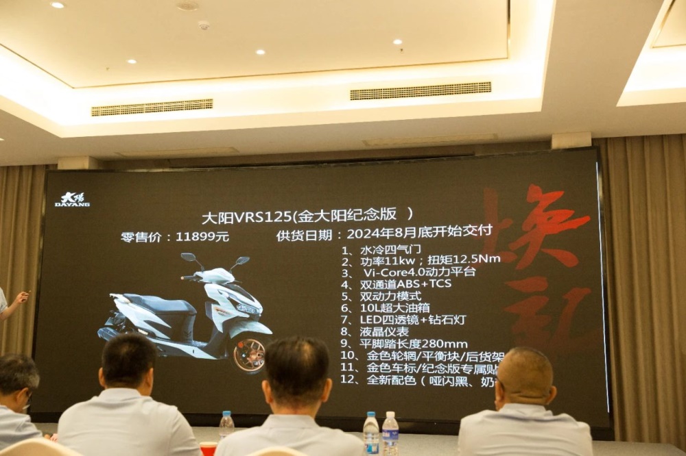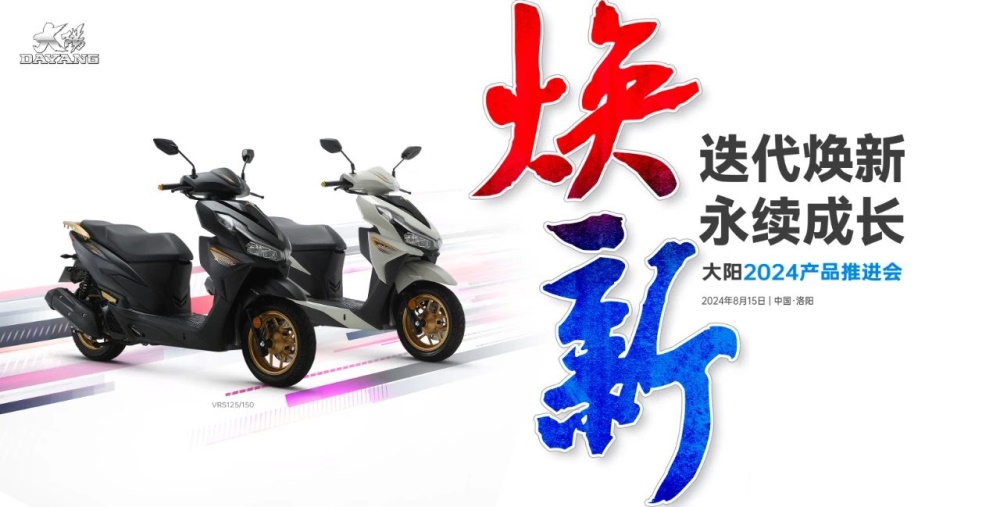 8月15日,大阳在工厂所在地河南洛阳,召开了2024年产品推进会,此次活动邀请了近百家经销商和媒体,主要介绍了两款VRS125、VRS150金大阳纪念款车型以及大阳品牌未来战略营销计划。