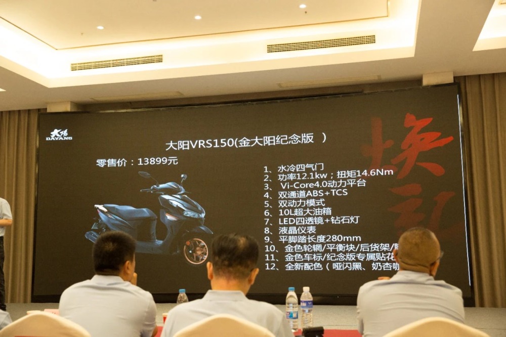 VRS150金大阳纪念版,搭载着Vi-Core4.0技术混合动力。其具有:油电混合技术、智能启停、静音启动、ABS+TCS电控、多场景多元ECU模式等配置,在众多小排量踏板车型中显得尤为豪华。 尤其是这项Vi-Core技术,会在车辆起步阶段给予10秒的电机辅助,轻松解决车辆启动的高油耗和加速问题,让用户享受快人一步的乐趣。 VRS125车系作为比150更早发售的产品,接受了更多严苛的市场检验,其拥有VRS150相同的豪华配置和机甲外观,于此同时还具有超越125性能的表现,被众多车友评价为堪比150的踏板小钢炮。VRS125金大阳纪念款升级Vi-Core4.0技术之后将更具性价比。 通过这次会议我们也能看到,大阳品牌秉承着“焕新迭代,永续成长”的理念,并未满足于过去的成绩不思进取。而是认真调研市场,坚持深度耕耘,积极研发,挖掘品牌发展更多的可能性。在经历近年市场的萎缩和内卷后,大阳品牌联合经销商施行“厂商联动共进退”,一针见血的总结出内卷的核心问题。未来大阳品牌将持续为广大车主提供更出色、更可靠的多元化车型,满足消费者最真实的需求。